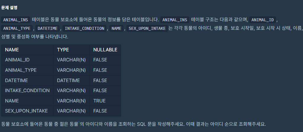 | [프로그래머스/SELECT] 동물의 아이디와 이름 (0) | 2024.03.17 |