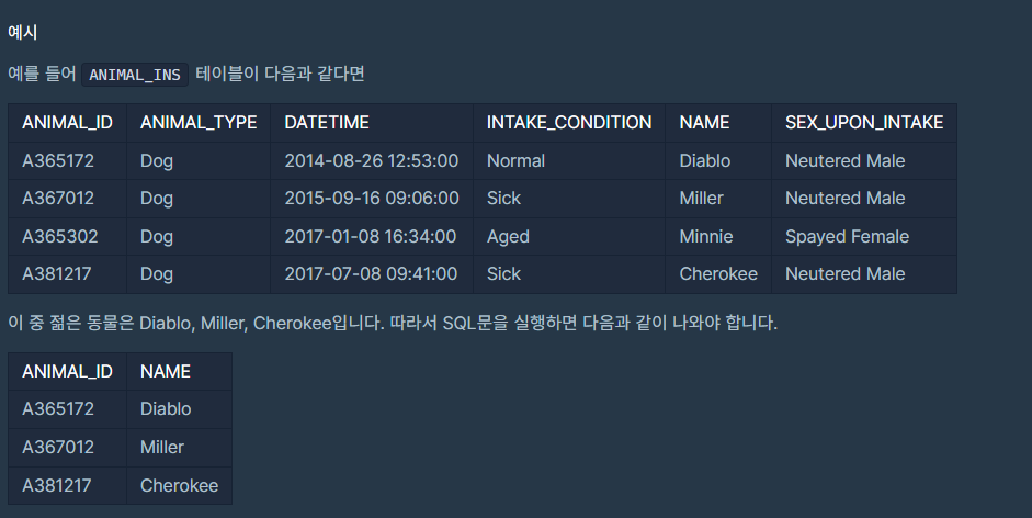 | [프로그래머스/SELECT] 아픈 동물 찾기 (0) | 2024.03.15 |