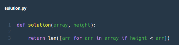 머쓱이의 기준 키는 height이고 이보다 큰 값들의 개수를 구하는 문제이다.