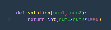 num1/num2로 먼저 나누고, *1000으로 1000을 곱한 다음, 마지막 int() 함수를 사용하여 정수 부분만 return을 해준다.