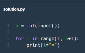 입력받은 n까지 range로 범위를 순회하면서 "*" 문자를 곱해주며 출력하면 조건을 충족할 수 있다.