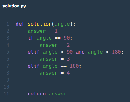직각, 둔각, 평각이 아니라면 예각일테고, 이 때는 1을 반환한다.