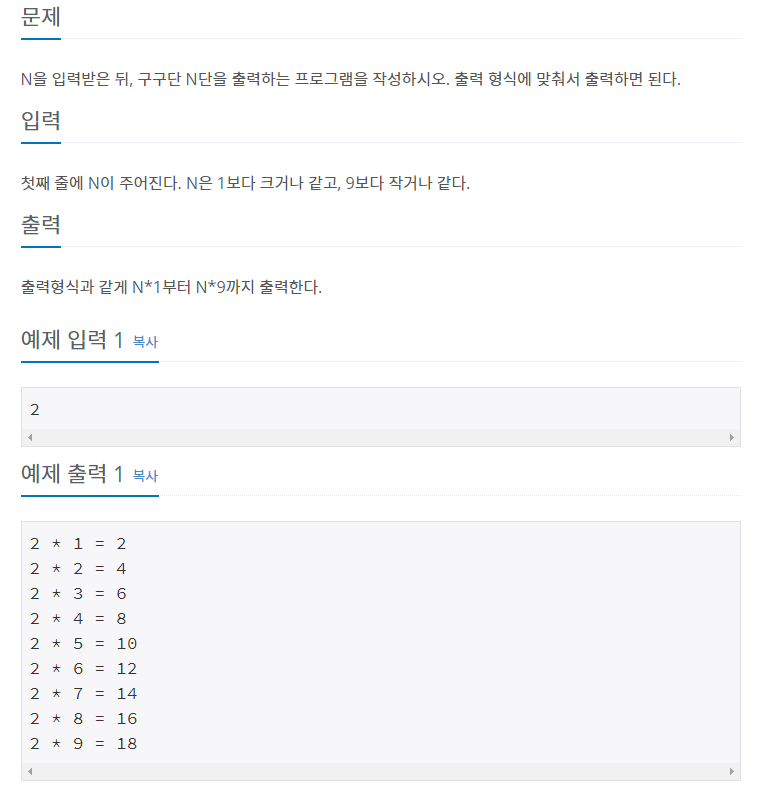 2739번: 구구단