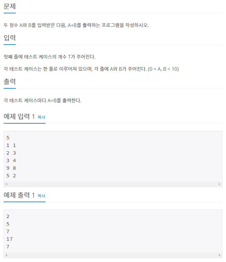 두 정수 A와 B를 입력받은 다음, A+B를 출력하는 프로그램을 작성하시오.