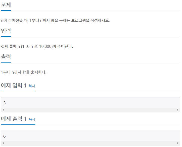 n이 주어졌을 때, 1부터 n까지 합을 구하는 프로그램을 작성하시오.