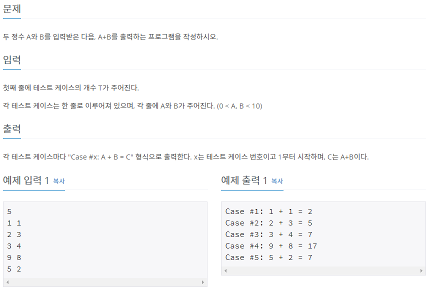 [백준] [Python3] #11022. A+B - 8 본문