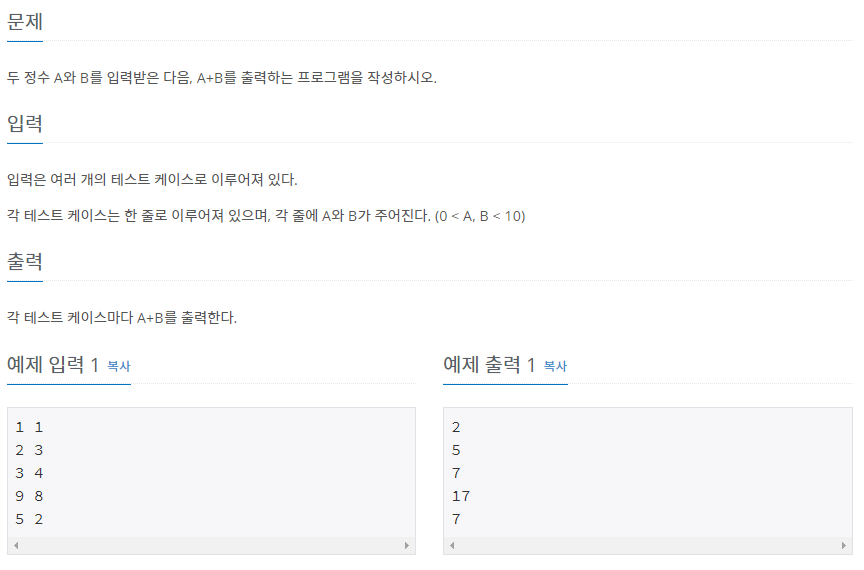 두 정수 A와 B를 입력받은 다음, A+B를 출력하는 프로그램을 작성하시오.