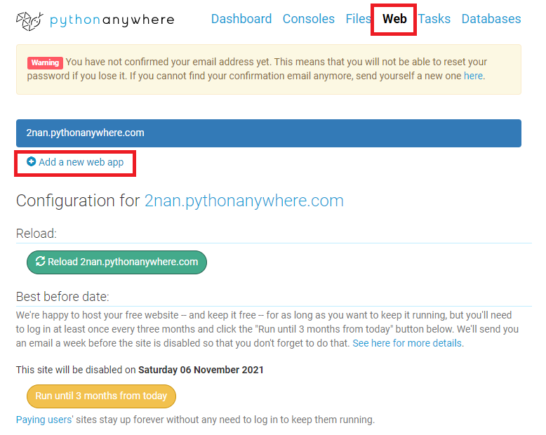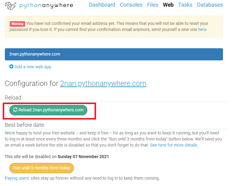 - Web => [Reload 000.pythonanywhere.com] Click