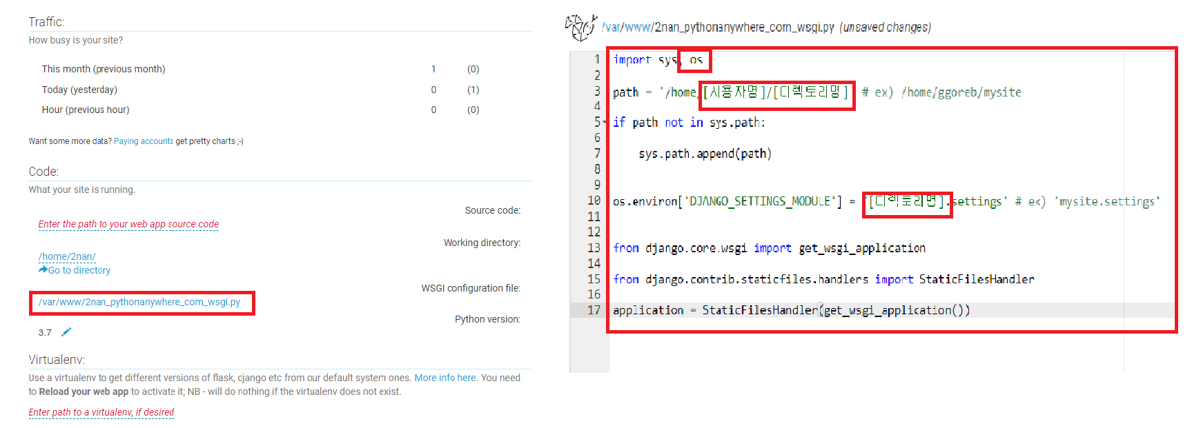 - Web => "/var/www/계정명_pythonanywhere_com_wsgi.py