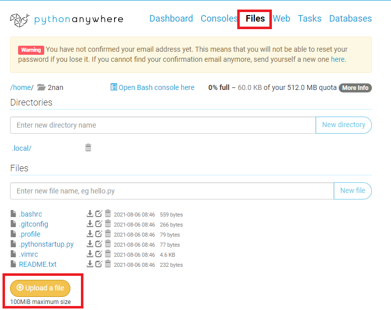 2) 해당 서비스 파일 압축 후 Files에 업로드