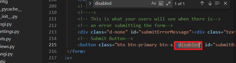 코드를 변경하여 버튼이 활성화되지 않기 때문에, index에서 disabled를 검색해 삭제해줍니다.