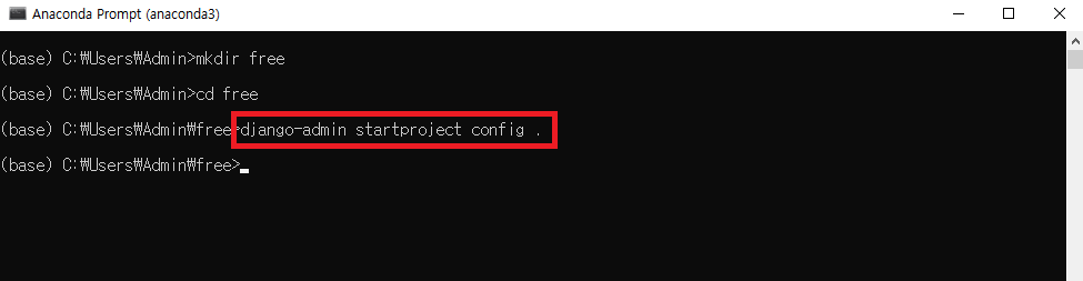 'django-admin startproject config .' 명령어를 통해 프로젝트 실행하기