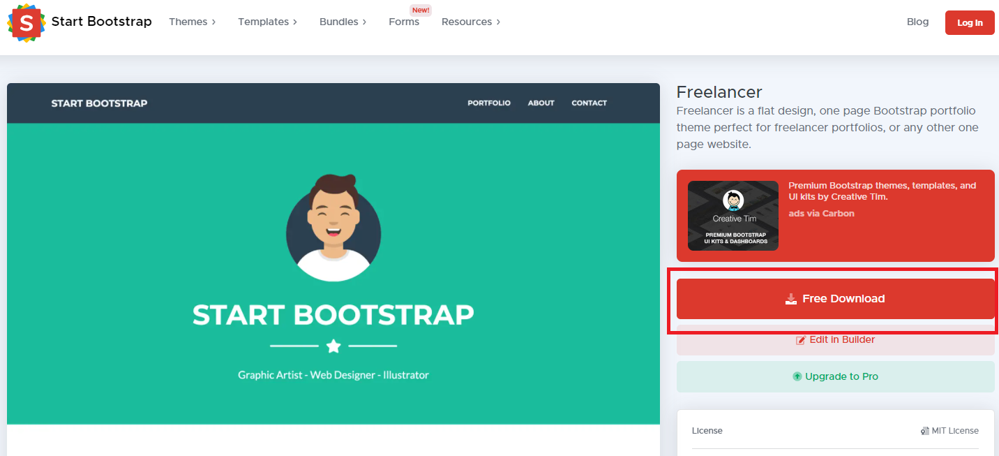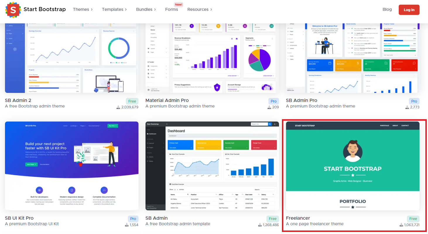 저는 Start Bootstrap의 무료 툴을 활용해 연습을 해보기로 했습니다.