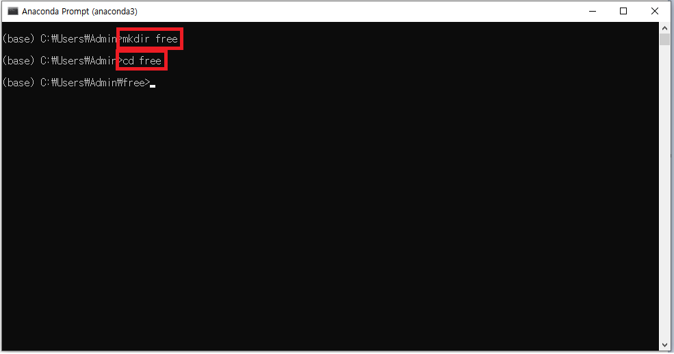 1. Anaconda Prompt 실행 후 프로젝트를 실행할 폴더 생성하기