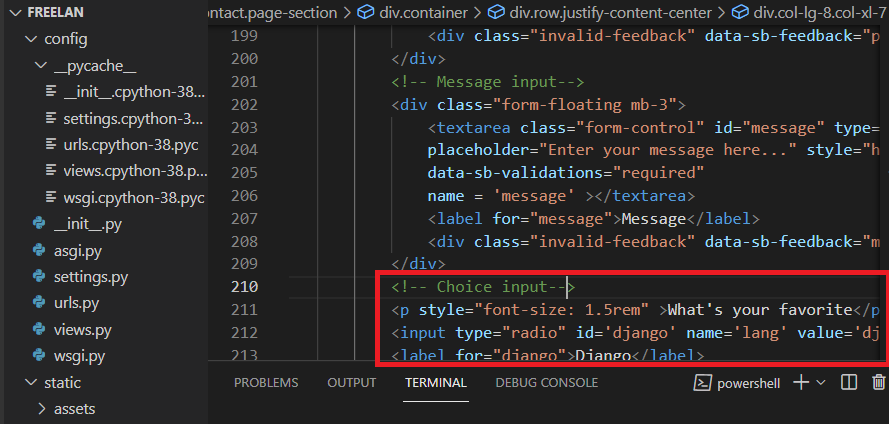 <input type="radio" id='django' name='lang' value='django' />