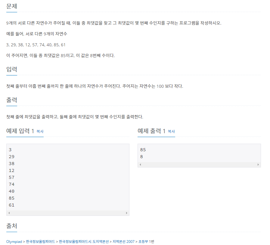 https://www.acmicpc.net/problem/2562