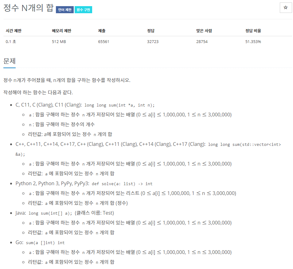 [백준][Python3] #15596. 정수 N개의 합 본문